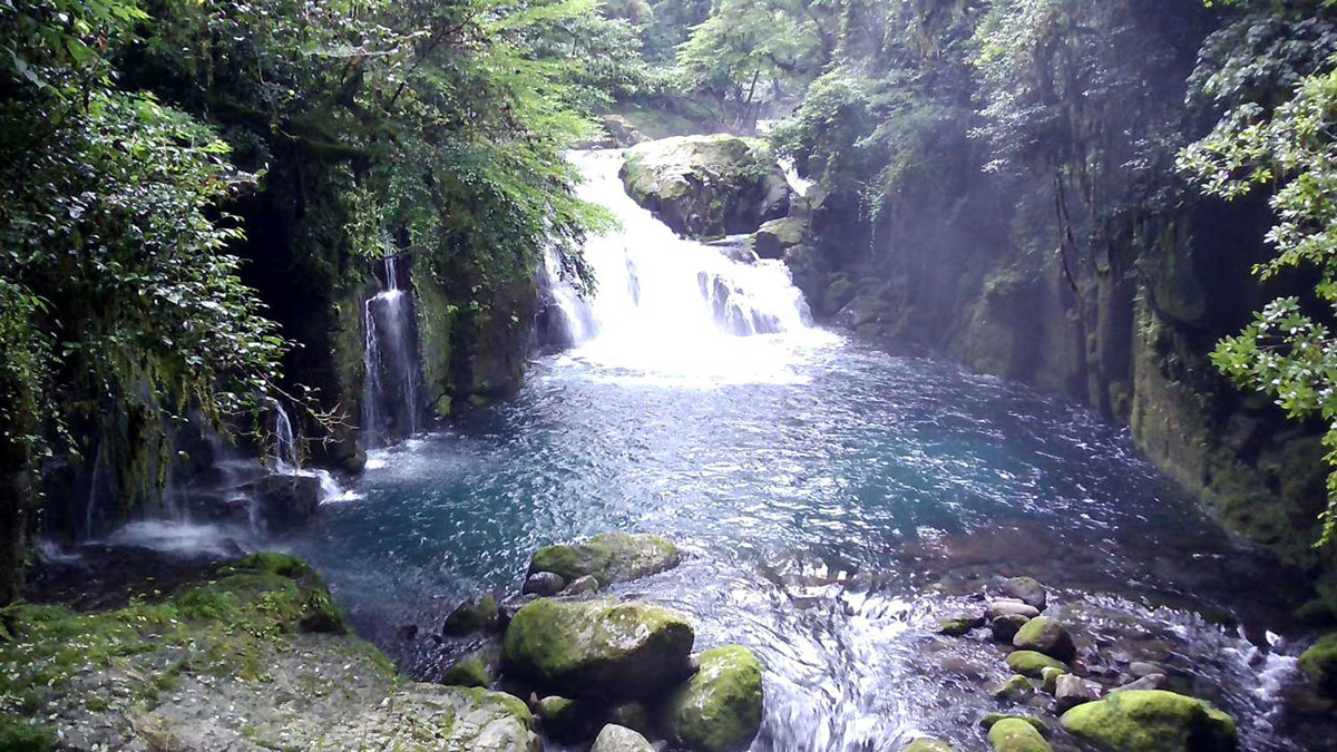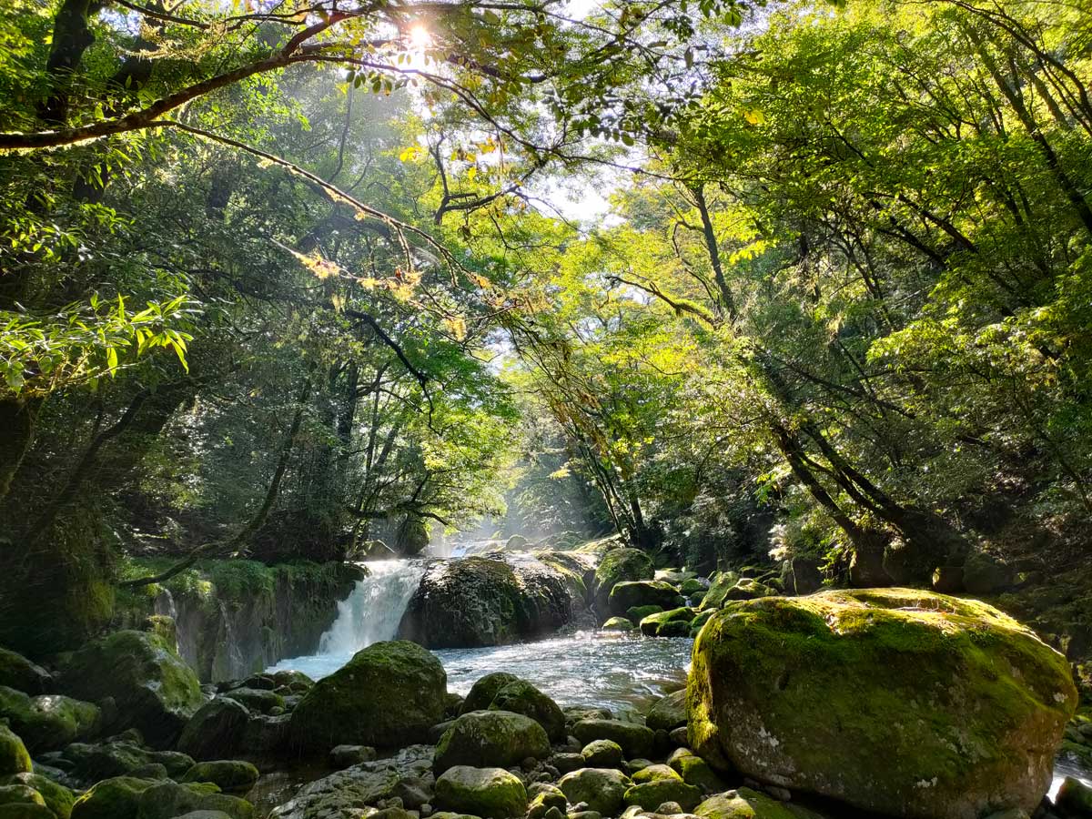 深緑のなか満々と流れる菊池渓谷水源、幻想を抱かせる神秘的な作品