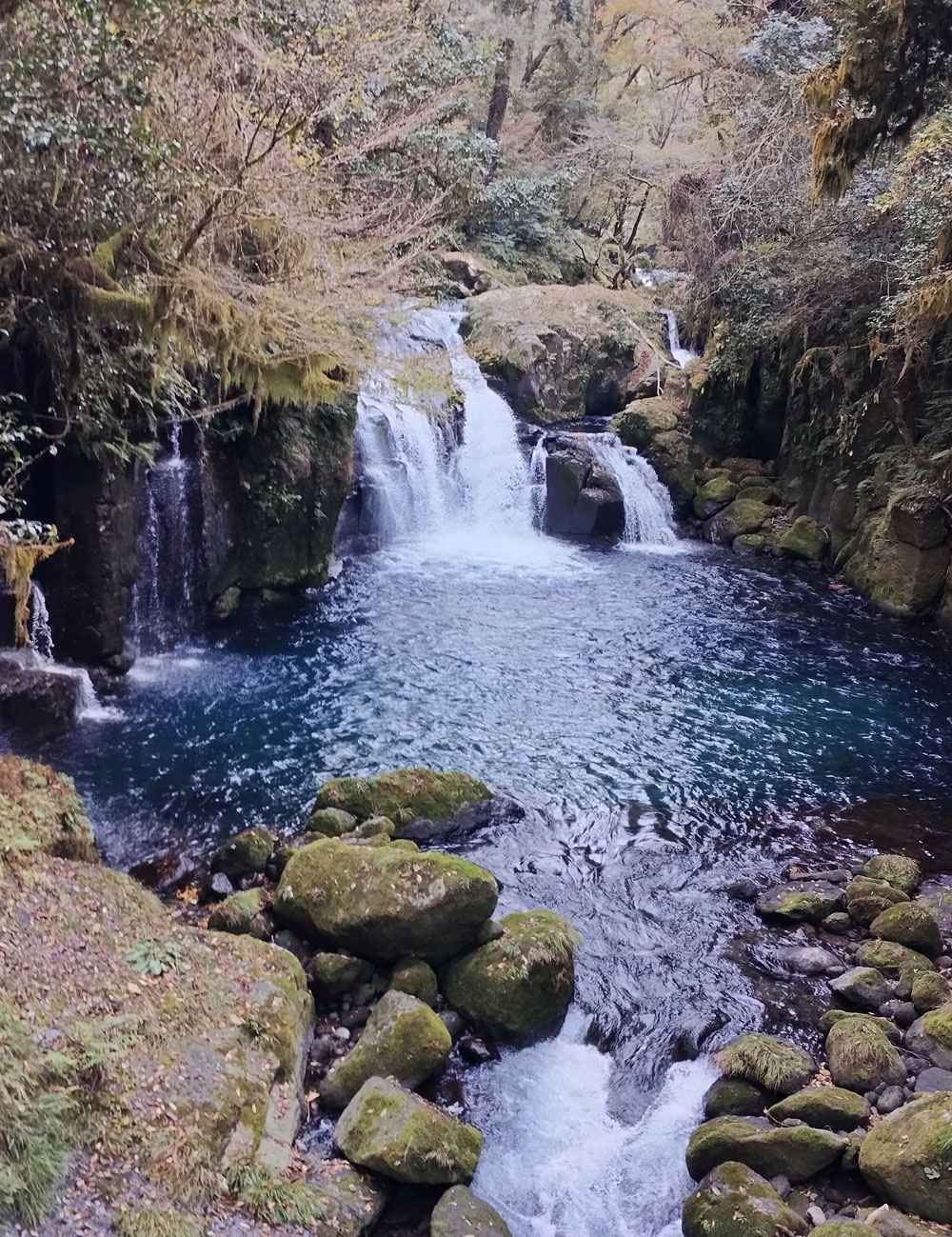 作為菊池川源頭的菊池谷,天然闊葉樹茂密,流經其中的淡水形成了大小不一的急流、堤岸和瀑布,造就了豐富的山澗溪流。風景與美麗的森林交織在一起,非常壯觀 這裡又被稱為“天然涼爽地”,夏季平均水溫低至13攝氏度,是四季遊人避暑的絕佳去處。秋天山澗倒映紅葉,春天綠意盎然,冬天滿山霜花。