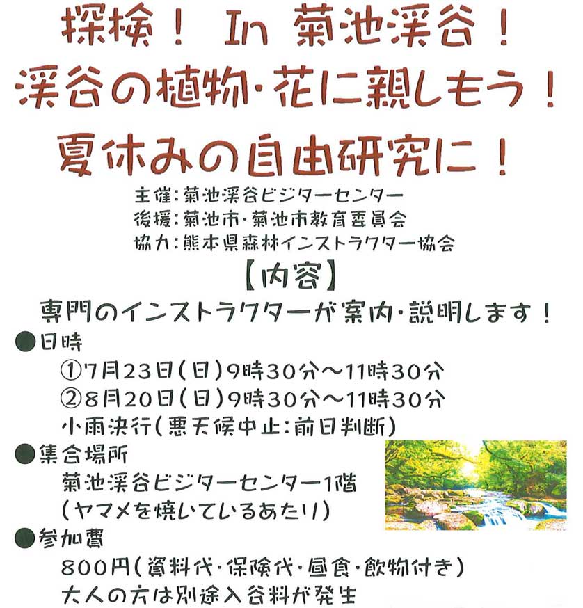 How to apply: Send by mail to the Kikuchi Valley Visitor Center (separate application form available)