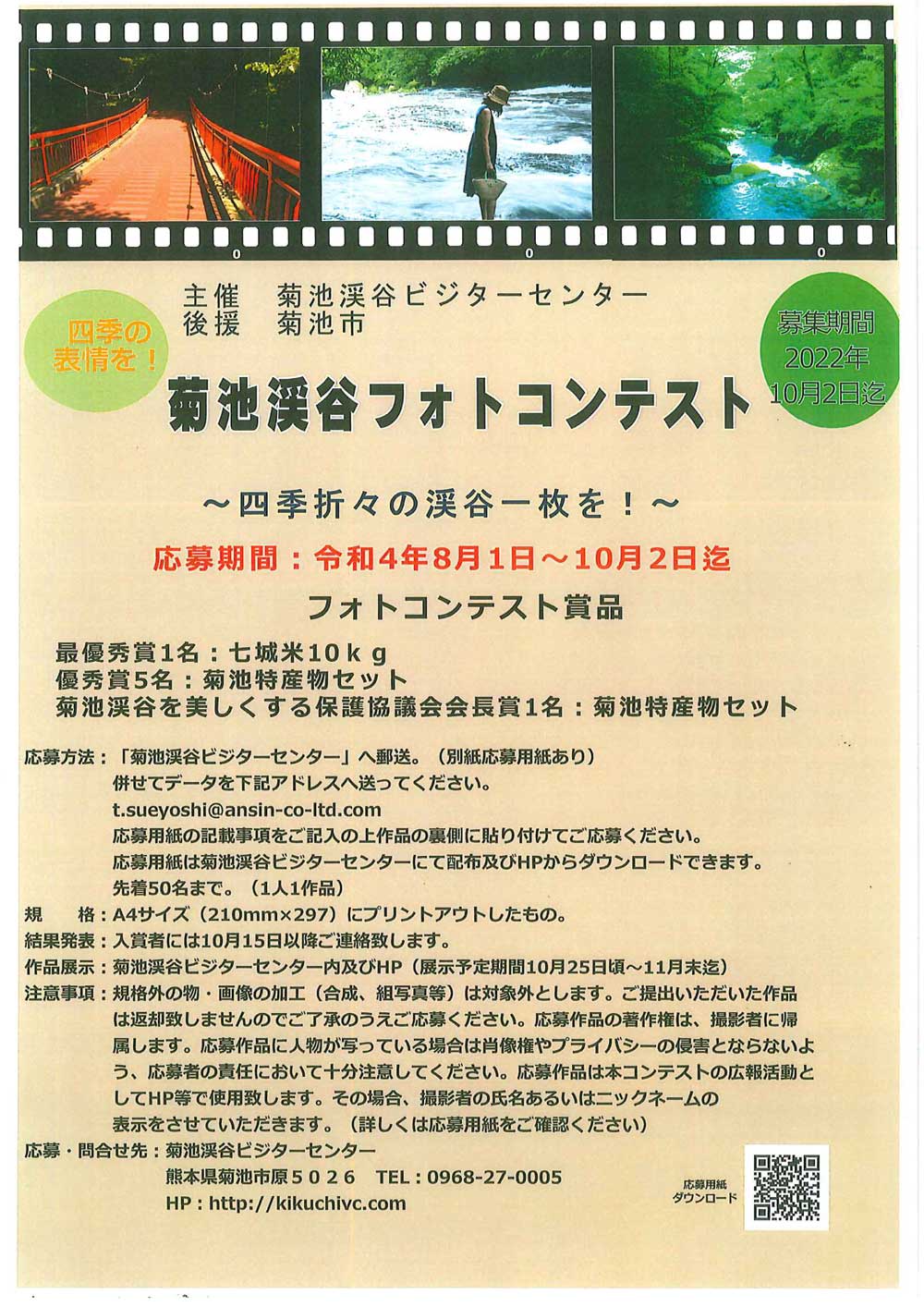 Contact information for applications and inquiries: Kikuchi Valley Visitor Center