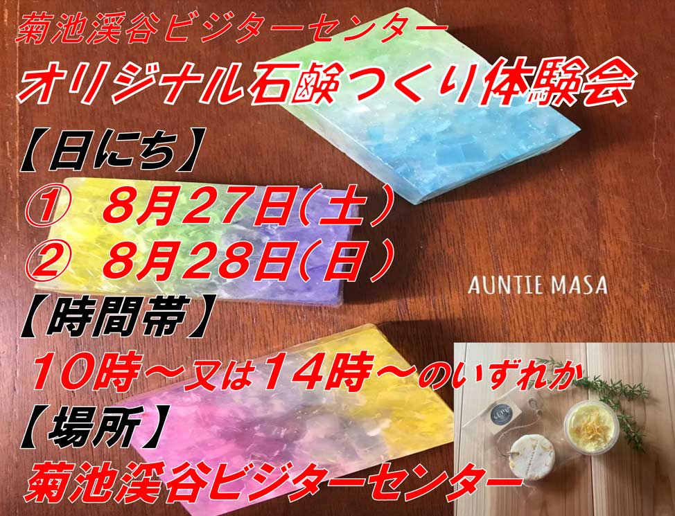Why don't you make "original soap" with the refreshing clear stream of Kikuchi Gorge as background music? Adults are also welcome!