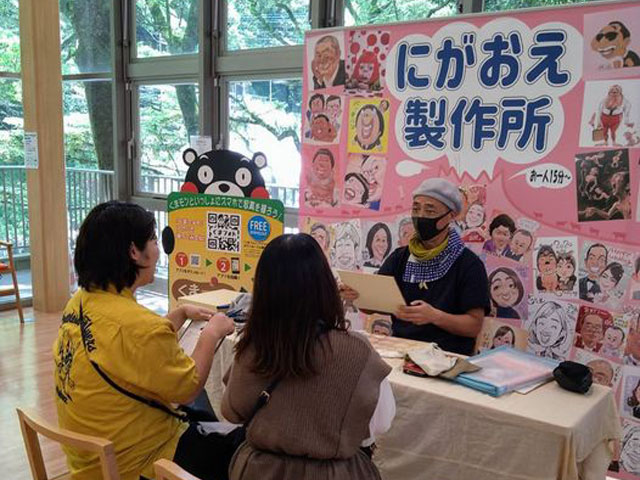 How about a caricature that makes you smile.How about to commemorate your visit to Kikuchi Gorge?