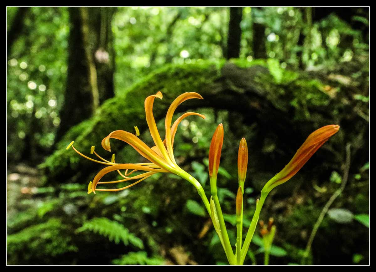 オレンジの花を配することで悠久の渓谷美を際立たせている。