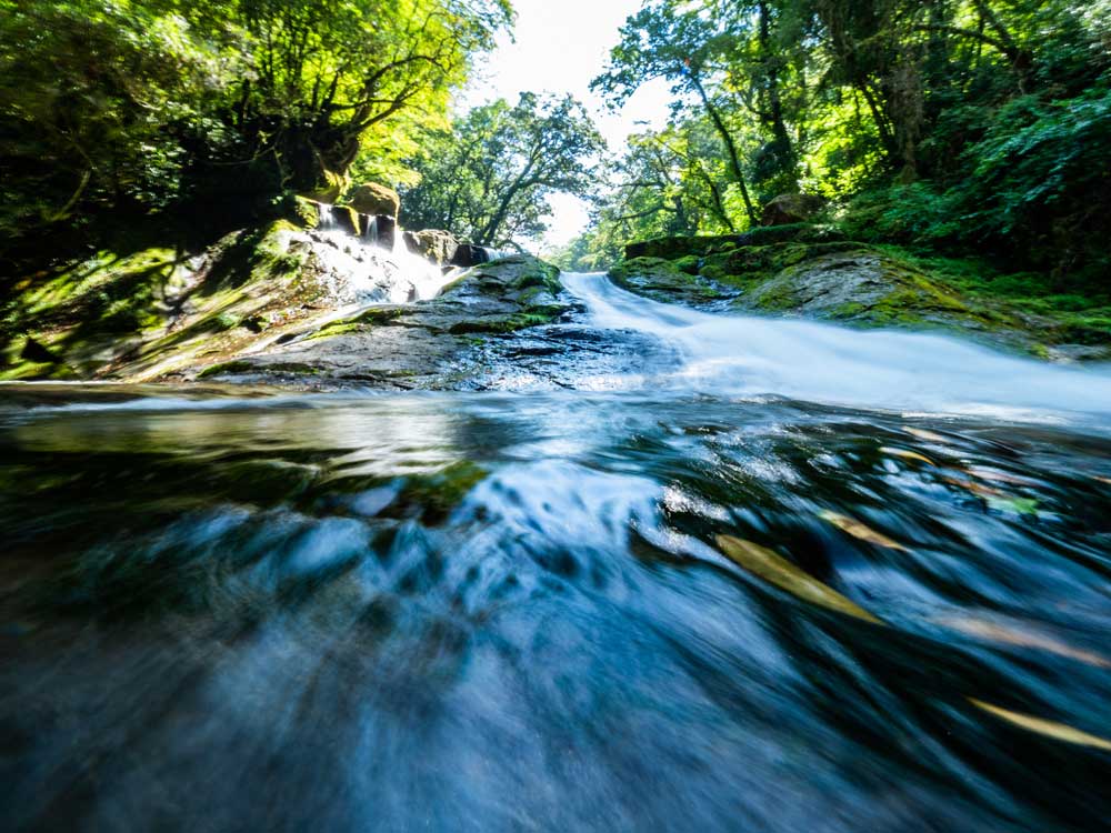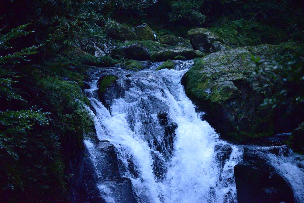 たくさんある滝のひとつをかけ下る渓流を荒々しく捉えた。